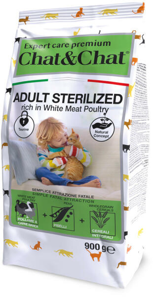 Teljes értékű táp felnőtt macskáknak. ÖSSZETÉTEL: Gabonafélék (teljes kiőrlésű gabona 22%), hús és állati származékok (fehér húsú baromfi 15%), származékok növényi eredetű (szárított répapép 1%), olajok és zsírok, növényi fehérje kivonatok, hal és halszármazékok, zöldségek (szárított borsó 0,2%). ANALITIKAI ÖSSZETEVŐK: Nyersfehérje 35,00%; Nyersrost 2,