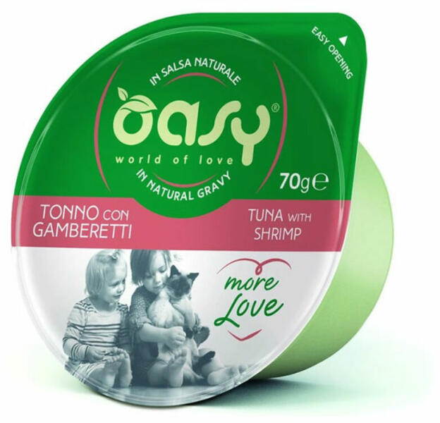 Az Oasy Cat Tálka More Love Tuna and Shrimp további jellemzői: gondosan válogatott összetevők a tálka mikrohullámú sütőbe is tehető nem tartalmaz mesterséges színezékeket, ízesítőt, tartósítószereket, szóját GMO mentes