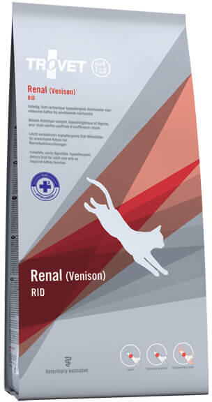 Könnyen emészthető, ízletes teljes értékű táp felnőtt macskák részére. A Trovet Renal Venison Diet felnőtt macskák részére kifejlesztett táp, mely csökkentett fehérjetartalma révén tehermentesíti a veséketA magas biológiai értékű fehérjék teljes mértékben fedezik a szervezet aminosav igényét. Segíti a vesék víz- és elektrolit egyensúlyt szabályozó működés