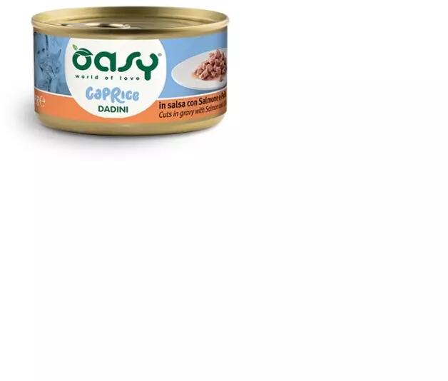 Az Oasy Dadini Salmon&Chicken ízletes, teljes értékű eledel, amely mindennapi kiegyensúlyozott táplálkozást kínál válogatós macskájának. A kis húsdarabok és a finom szósz garantálja a maximális ízletességet. Az Oasy finom lazaccal és csirkehússal, puha és finom textúrájával ideális cicája etetésére. Gabona, GMO és szója nélkül készült. Főbb jellemzők: GMO