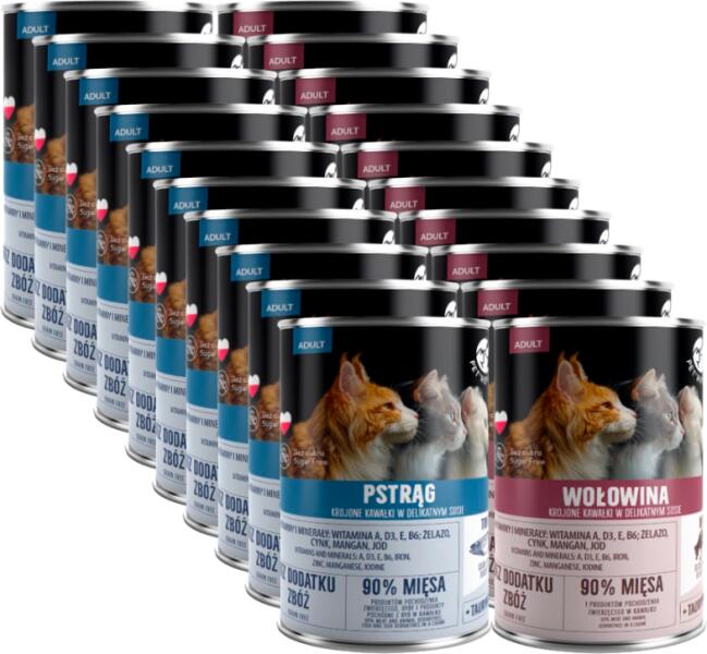 A készlet tartalmazza; 10x PetRepublic darabok marhahúsos szószban 400g macskának10x PetRepublic darabok pisztrángos mártásban 400g macskánakMarhahús, szeletelt darabok finom mártásban, 400g. Szeletelt marhahúsdarabok minden fajta macskának, finom mártásban tálalva, amely meghívást jelent egy finom étkezésre. Darabonként 90% hús és állati eredetű termék!NINCS ZÖRZSÉG É