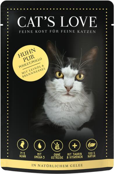 Gabonamentes teljes eledel felnőtt macskák számára Lenolajjal és csalánnal Mesterséges színezékek és attraktánsok nélkül Gabonamentes