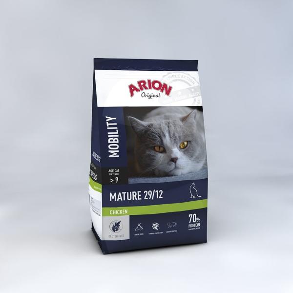 Az idősebb macskák kevésbé aktívak és kisebb a zsírmentes testtömegük. Ezek a fizikai változások a bazális metabolikus ráta, ezáltal pedig az energiaigény csökkenéséhez vezetnek. Az Arion Original Mature 29/12 ezért rendkívül könnyen emészthető összetevőkkel, könnyen elnyelődő nyomelemekkel és extra L-karnitinnel rendelkezik a zsíranyagcsere támogatása érdekében.