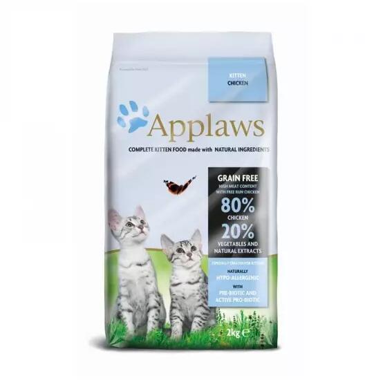 Applaws Cat Száraz Kitten 2kg – Gabonamentes, Teljes Értékű Táplálék Kölyök, Vemhes és Szoptató Macskáknak Az Applaws Kitten 2kg száraz macskatáp teljes értékű táplálékot kínál a kölyök , vemhes és szoptató macskák számára, biztosítva a fejlődéshez szükséges alapvető tápanyagokat és energiát. A receptúra a vadon élő macskák természetes étrendjét után