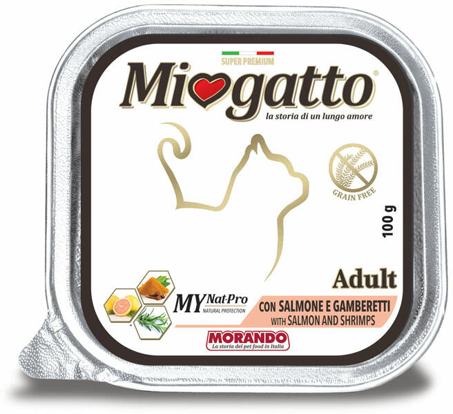 Összetétel: Lazac (29%); csirkemáj, -szív, -zúza (28%); lazac és csirkehúslé (27,8%); csirkefilé (14%); ásványi anyagok (0,5%); szárított tojáshéj (0,5%); lazacolaj (0,2%). Összetétel elemzés: Fehérje 11,0%; zsír 7,0%; nyershamu 2,2%; nyersrost 0,3%; nedvesség 78%; kálcium 0,3%; foszfor 0,2%; nátrium 0,2%. Adalékanyagok / kg: Vitamin D3 200 N. E. ; Vitamin E 50 mg; taurin 1