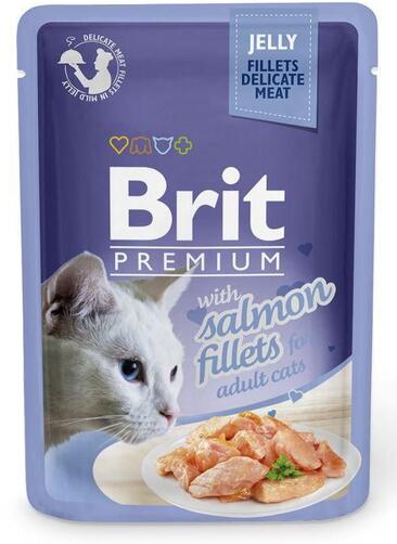 Brit Premium Delicate Nedves macskaeledel, Lazac aszpikban, 24x85gÖsszetétel:: – 74% hús és állati eredetű kiegészítő termékek a filékben, hal és halakból származó termékek (8% lazac a filékben), növényi eredetű fehérjekivonatok, növényi eredetű kiegészítő termékek (0,4% inulin), ásványi anyagok, cukrok. Analitikus összetevők:: nyersfehérjék 8,5%, zsírtartalom