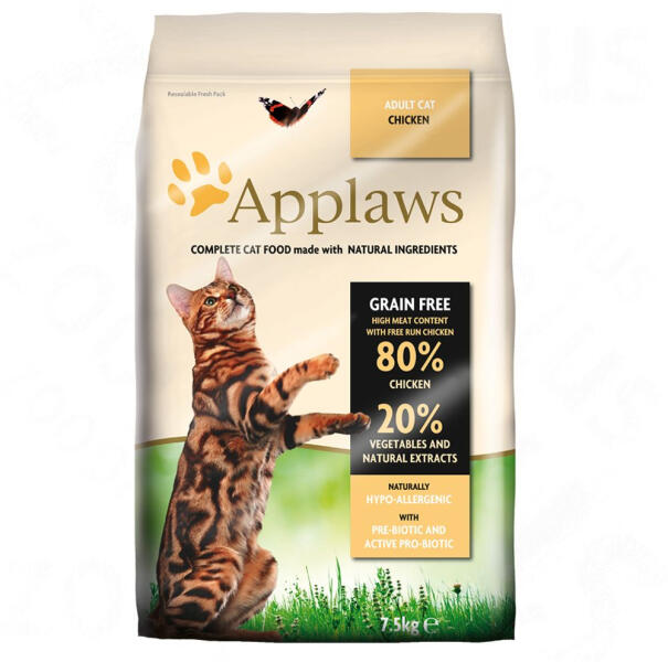 A zooplus. hu kínálatából: Az Applaws Adult csirke valamint csirke & lazac páratlan szárazeledel felnőtt macskáknak. Kiscicáknak kifejlesztett változatban is kapható. Az Aplaws eledel a macskák szabad természetben fogyasztott, természetes táplálékát szimulálja, szárított pelletek megjelenési formájában. A macskák tisztán húsevők, emésztőrendszerük is állati feh