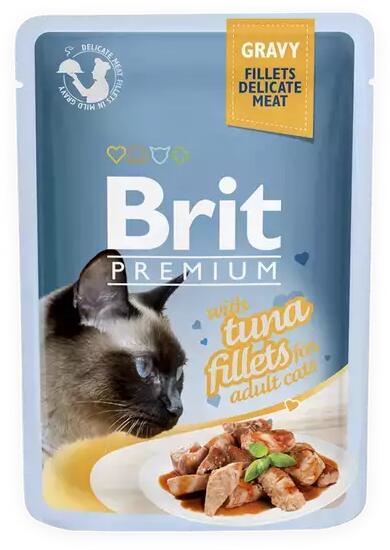 Brit Premium Cat Pouch with tonhalfilé felnőtt macskáknak. Összetevők: filé, hal és hal származékok (8% filé), növényi eredetű fehérjetermékek, növényi eredetű származékok (0,4% inulin), ásványi anyagok, különböző cukrok 74% -a. Analitikai összetevők: nyersfehérje 8,5%, zsírtartalom 4,5%, kakaó 2,0%, nyersrost 0,4%, nedvességtartalom 82%. Táplálékkiegészítők 1
