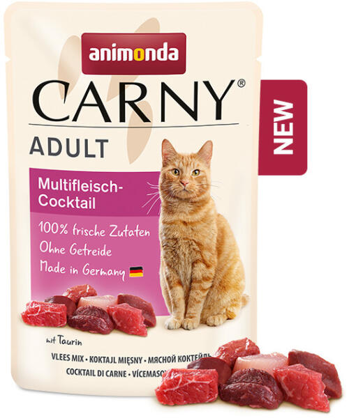 Az Animonda Carny egy teljes értékű nedves eledel zacskóban csirkével és tonhallal, felnőtt macskáknak (1-6 éves korig), minden fajta számára. a csirke cink- és szelénforrás - olyan ásványi anyagok, amelyek fontos szerepet játszanak a szervezet védekezőképességének serkentésében. kizárólag friss húsrészeket tartalmaz kifejezetten a felnőtt macskák táplálkozási szü