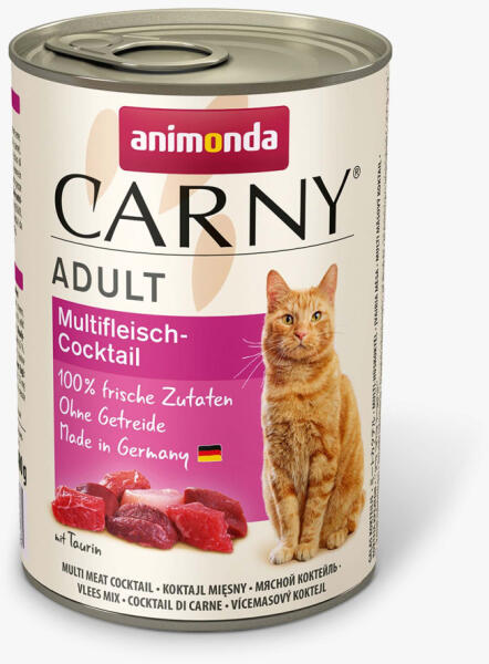 Marhahús, csirke és vadhús: A Carny Adult Multi-Meat Cocktail a különböző húsfajták legjavát egyesíti egyetlen teljes értékű takarmányban – és ellátja a macskákat az összes alapvető tápanyaggal. Összetevők: 34% marha (szív, tüdő, vese, színhús, tőgy), 31% húsleves, 27% csirke (tüdő, gyomor, máj, nyak), 7% vadhús Analitikai összetevők: Fehérje: 11,5%, Zsír: 5