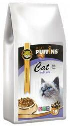 Puffins Cat Delicate Marhahús és Tonhal 10kg, Szuperprémium macskaeledel hústöltelékkel. Teljes értékű eledel minden fajta felnőtt macskának Friss marhahús, tonhal és bárányhús. složení: Hovězí 58 % (cerstvé hovezí 39 %, dehydrované hovezí 12 %, hovezí moucka 7 %), rýže, tuňák 14%, hrášek, zelenina (cerstvá, sušená mrkev, zelený špenát, petržel), jehněčí mo