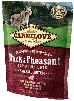 Felnőtt macskáknak, 34% kacsa és 25% fácán, gyümölcsök, zöldségek és gyógynövények, gabonafélék és burgonya nélkül, természetes rostokkal a szőrlabdák eltávolítása érdekében. Felnőtt macskáknak, 34% kacsa és 25% fácán, gyümölcsök, zöldségek és gyógynövények, gabonafélék és burgonya nélkül, természetes rostokkal a szőrlabdák eltávolítása érdekéb
