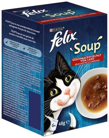 1.44kg Felix Soup alutasakos leves, lédús húsdarabokkal. Marha-, csirke és bárányhússal, így minden cicának örömet okoz. Akár étvágygerjesztőként étkezés előtt vagy kényeztetésként az étkezések között. Kiegészítő eledel felnőtt macskák számára. 1 dobozban 6 tasak leves található. >> Felix Soup termékek
