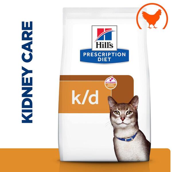 Hill's PRESCRIPTION DIET k/d Kidney Care száraz macskatáp csirkével. Amikor a macskák veseszövete károsodik, a vesék nem tudnak olyan jól működni, mint korábban. Az állapotot nem lehet visszafordítani, de a progressziója lelassítható. A vesebetegségre szánt diétás tápok célja, hogy csökkentsék a vesék terhelését, és így azok hatékonyabban működhessenek. A csökkent