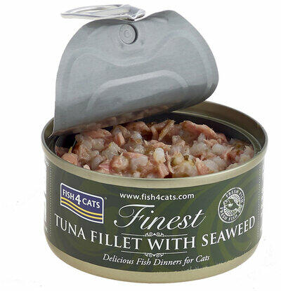 A macskák imádják a halat! Kényeztesse őket egy Fish4Cats® Finest konzervvel, amely tonhalat tartalmaz tengeri algákkal. Ez egy egészséges és ízletes étel, gazdag omega-3 zsírsavakban és könnyen emészthető fehérjéket tartalmaz. A magas hal tartalomnak köszönhetően ez az állateledel természetes és egészséges táplálékot biztosít a macskák számára. Összetevők: tonh