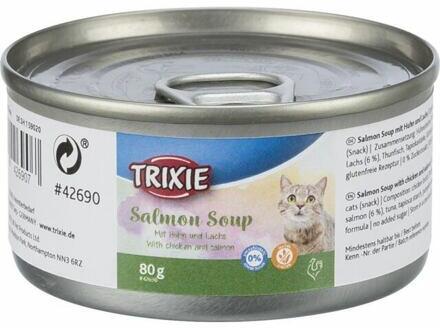 Salmon Soup csirke és lazac - folyékony macskaeledel, 80 g, folyékony csemege - leves macskáknak gluténmentes recept, 0% hozzáadott cukorral csirkével és garnélarákkal (hústartalom 13 %, haltartalom 6 %) hozzáadott taurinnal ( támogatja a látást és megelőzi a látáshiány tüneteit)súly: 80 gÖsszetevők: csirkeleves (74%), csirkehús (13%), lazac (6%), tonhal, tápióka kemény