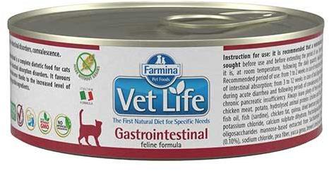 Vet Life Natural Diet Cat Gastrointestinal konzerv további jellemzői: A használt összetevők minősége biztosítja a táp könnyű emészthetőségét , támogatja a jobb felszívódását és hasznosulását . A bélrendszer egészségének helyreállítását a kiváló minőségű alapanyagok, FOS - MOS, egyéb prebiotikumok, Omega-3 zsírsavak és természetes antioxidánsok biztosítják