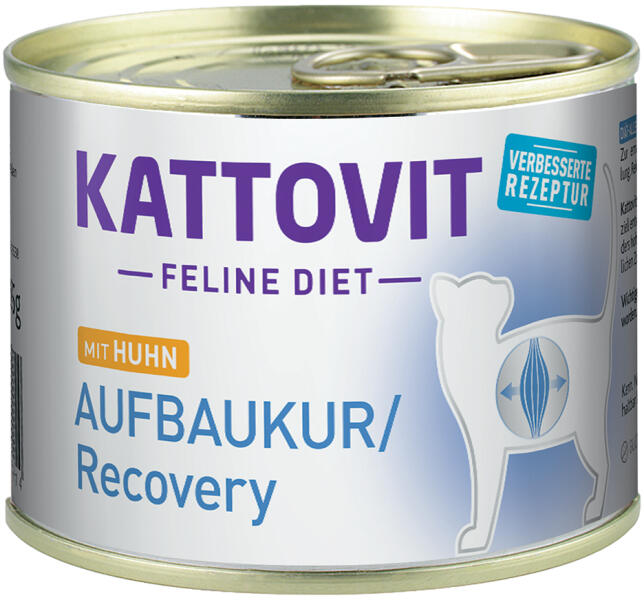 Gyártó: KATTOVIT Modell: Recovery chicken 185 g Leírás: Táplálkozási helyreállításra a lábadozás alatt és súlygyarapodásra a felépülési szakaszban, valamint alultápláltság esetén. Az AUFBAUKUR-t kifejezetten arra fejlesztették ki, hogy a legyengült macskák számára különösen magas energiatartalmat biztosítson könnyen emészthető összetételben. Ebben az élelmiszer