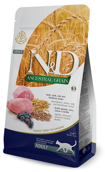 Teljes értékú eledel felnőtt macskák számára. Tönkölybúza, zab, bárány, áfonya. ÖSSZETEVŐK: Friss bárány hús (22%), szárított bárány hús (20%), tönkölybúza (10%), zab (10%), állati zsiradék, szárított egész tojás, friss hering, szárított hering, hidrolizált állati fehérje, halolaj, zöldborsó, szárított sárgarépa, szárított lucerna, inulin, frukto-oligo-