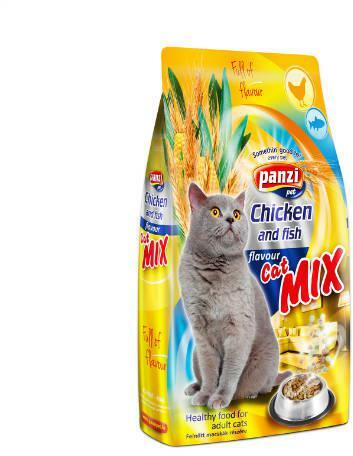 Panzi Cat-Mix Adult (csirke) száraztáp - Felnőtt macskák részére (10kg) Teljesértékű szárazeledel cicáknak csirkés ízesítéssel. Kiszerelés: 10 kg A PANZI-Mix egy kimondottan macskák részére összeállított recept alapján készült száraz macskaeledel. Beltartalmának köszönhetően mind lakásban mind pedig a szabadban tartott macskák egyaránt fogyaszthatják. Teljes ért