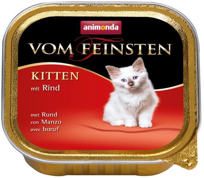 Már az anyaállatban töltött gyarapodás alatt a kiscicák igazi kis macska-egyéniségként elkezdik kifejleszteni kifinomult ízlésvilágukat és preferenciáikat. A Vom Feinsten Kitten különösen alkalmas a növésben lévő cicák táplálkozási igényeinek kielégítésére. Összetevők: 63% Hús és hússzármazékok (25% marha, baromfi, sertés), Húsleves, Ásványi anyagok Analiti