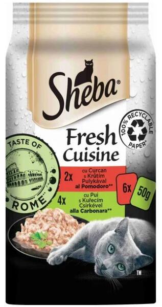 A Sheba Taste of Rome egy teljes értékű nedves eledel felnőtt macskák számára, amelyet Róma kulináris hagyományai szerint készítenek a legnagyobb ínyencek számára. teljes és kiegyensúlyozott nedves eledel felnőtt macskáknak 12 hónapos kortól a 6 kapszulából álló csomag 2 ízben tartalmaz - csirke és pulyka minden kapszula 1 adag friss húst képvisel ízletes lében álla