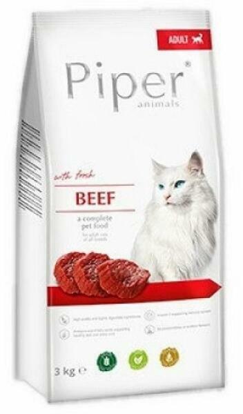 Dolina Noteci Piper Animals with Beef for Cats 3kg - Termékleírás A Piper Animals teljes értékű eledel marhahússal tartalmazza a megfelelő mennyiségű fehérjét és zsírt egy felnőtt macska számára húsból és állati termékekből, beleértve a friss marhahúst is. A taurin alapvető fontosságú összetevő, amely számos folyamatot szabályoz a macska szervezetében. A taurinhiá