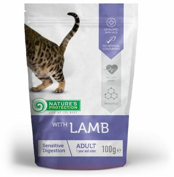 A Nature's Protection egy dobozban elhelyezett bárányos táp felnőtt, különösen alkalmas érzékeny emésztésű macskák számára. bárányhús - hasznos, alacsony zsírtartalmú és kalóriatartalmú, könnyen emészthető hús természetes, prémium összetevőket tartalmaz, amelyek védik és erősítik az immunitást zsírszegény , kalóriatartalmú és könnyen emészthető hússal k