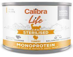 Calibra Cat Life Cons. Sterilizált pulyka 200g, Calibra Cat Life Sterilised Turkey - pulykakonzerv recept felnőtt macskák számára, ivartalanítás után is alkalmas. A teljes értékű nedves eledel egyetlen fehérjetípuson alapul, a receptúra korlátozott számú összetevőből áll. A konzerv összetétele gabonamentes és gluténmentes, ami befolyásolja a könnyű emészthetőséget. A