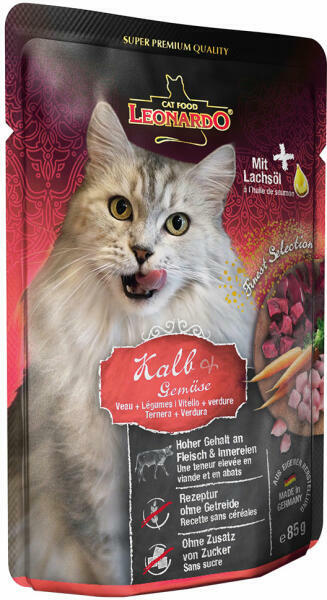 A zooplus. hu kínálatából: Változatos nedveseledel-változatok exkluzív ízekben. A Leonardo Finest Selection a húst vagy halat rafinált összetevőkkel gazdagítja. A kínálatban szerepelnek klasszikusok, pl. hal és garnéla, de egzotikus változatok is, mint pl. kengurus macskamenta: az aromatikus receptúrákat még az igényesebb cicák is szívesen fogadják. Mivel minden Leonardo F