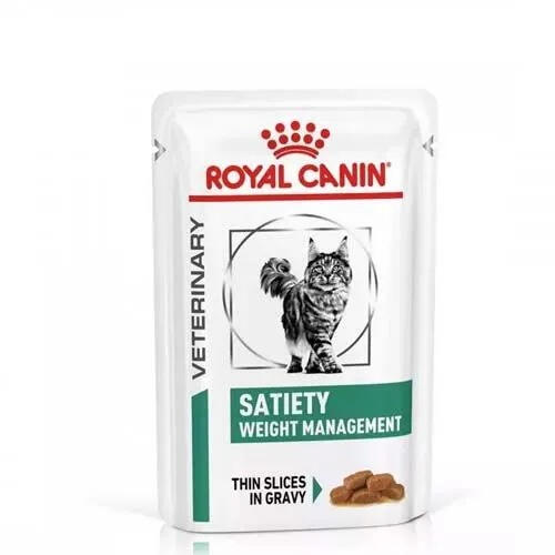 A Royal Canin Veterinary Feline Satiety Weight Management ízletes nedves diétás eledel felnőtt macskák számára, melynek receptúráját speciálisan úgy fejlesztették ki, hogy támogassa a hatékony súlykontrollt. Csökkentett energiatartalm ú és segíthet cicájának abban, hogy egészségesen és tartósan lefogyjon, valamint a diéta befejeztével megtartsa a súlyát. A Royal Canin