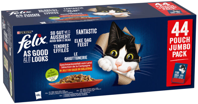 Felix nedves eledel felnőtt macskáknak A termék legfontosabb jellemzői: Nedvestáp macskáknak. Megfelel egy felnőtt macska napi energiaszükségletének. Erősíti az immunitást D- és E-vitaminnal, valamint Omega-savakkal. Hozzáadott aromáktól, mesterséges színezékektől mentes. Ízkeverék: marhahús, csirke, kacsa, bárány A készlet 44 tasakot tartalmaz 11 x csirke 11 x marhahús