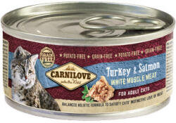 Teljes értékű szuperprémium gabona- és burgonyamentes eledel minden fajtájú felnőtt macska részére pulykával és lazaccal. Nem tartalmaz mesterséges ízfokozót és tartósítószert. Esszenciális fehérjéket, zsírokat, vitaminokat és természetes antioxidánsokat tartalmaz. Összetétel : 35% pulykahús, pulyka máj, pulyka szív, 42,9% húsleves, 20% lazac, 1% áfonya, 1% ásván