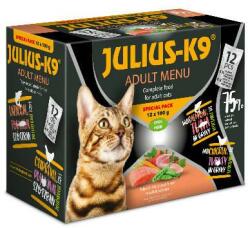 Julius-K9 Adult Menu Special Pack (lazac-tonhal, csirke-pulyka szószban) macskák részére (12x100g) Teljes értékű eledel felnőtt mcskák részére. - 6db lazac, tonhal és zöldséggel szószban. - 6db csirke, pulyka és zöldséggel szószban.
