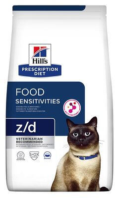 Teljes értékű, diétás eledel ételintoleranciával és allergiával küzdő felnőtt macskák számára, válogatott szénhidrát- és fehérjeforrásokkal, hidrolizált fehérjével, Active Biome+ technológiával. A Prescription Diet z/d Food Sensitivities kifejezetten olyan felnőtt macskák számára került kifejlesztésre, melyeknél ételintolerancia nemkívánatos bőr- vagy emészté