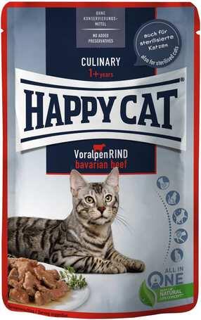 1.7kg A Happy Cat Culinary Meat in Sauce Voralpen-Rind ízletes marhából és finom szószból álló nedveseledel. Ideális az ínyenceknek. Kifinomult teljes értékű eledelként támogatja a húgyutakat és biztosítja az optimális folyadékellátást. A Happy Cat Meat in Sauce Voralpen-Rind ivartalanított macskáknak is adható.