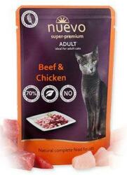 Nuevo macskazseb felnőtt csirke és marhahús 85g, A Cat pocket Nuevo Adult csirkés és marhahúsos macskatáp teljes értékű eledel minden fajta felnőtt macskának csirkével és marhahússal. A magas hústartalomnak és a természetes összetevőknek köszönhetően, valamint a mesterséges adalékanyagok, gabonafélék és gluténmentességnek köszönhetően ez az eledel a magas minőség
