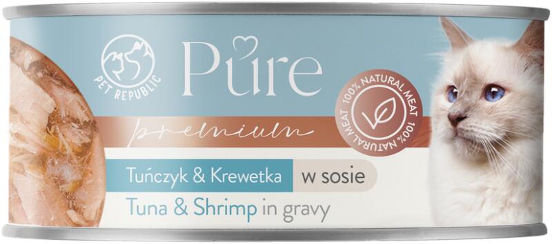 Tiszta csirke és tonhalÖsszetevők: tonhalhús, garnélarák, módosított tápióka-keményítő, tonhal-kivonat. Analitikai összetevők: nedvességtartalom 84,0%, nyersfehérje 13,0%, nyerszsír 0,5%, nyershamu 1,0%, nyersrost 0,5%. Adalékanyagok/ 1 kg: étrend-kiegészítők: E-vitamin 200 mg, taurin 200 mg.