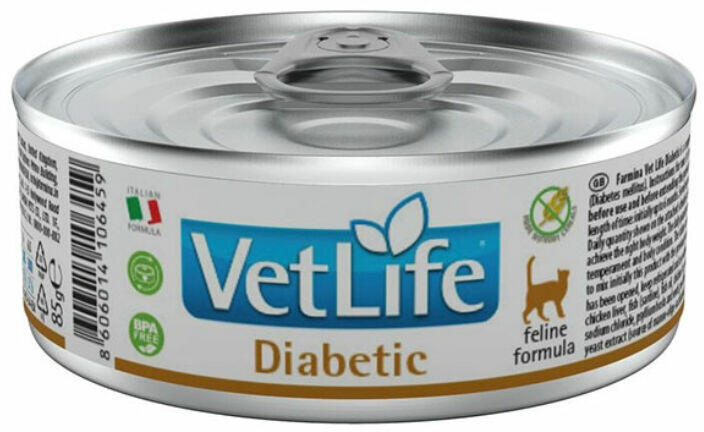 Vet Life Cat Diabetic konzerv további jellemzői: Különleges összetételének köszönhetően az étkezés utáni vércukorszint emelkedésére adott legjobb és fokozatos inzulin felszabadulást eredményezi. Csökkentett keményítő és cukortartalma (