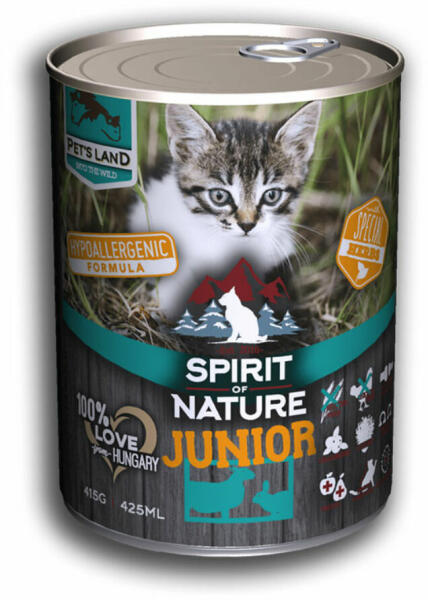 A Spirit of Nature Cat konzerv Junior Bárányhússal és nyúlhússal további jellemzői: Speciális gyógynövénykeverék tartalma általános immunerősítő és segíti a méreganyagok kiürülését a szervezetből, így az állat egészsége és vitalitása sokáig magas szinten maradhat. tökéletes egyensúly a minőségi alapanyagokból rendelkezésre álló energia és az emésztési p