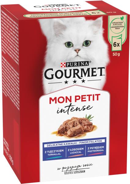 A hallal és bőséges, ízletes szósszal készülő fenséges falatok igazi nyalánkságot jelentenek macskája számára! A Poésie® Délice minden tasakja kiváló minőségű haldarabkákat tartalmaz a színtiszta élvezetért, amelyet cicája nagyon fog szeretni. Ideális módon kínálja a táplálkozás változatosságát és az ízek sokszínűségét, kedvence nem tud majd betelni ezzel