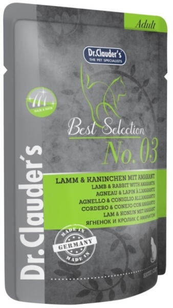 Teljes értékű nedves eledel felnőtt macskák részére, báránnyal és nyúllal, magas hústartalommal. az áfonya C-vitaminban gazdag, támogathatja a vesét és a húgyúti funkciókat a lenmagolaj támogatja a bőrt és a szőrzetet az amaránt támogatja az egészséges csontokat, szöveteket és az optimális agyi funkciókat a quinoa segít szabályozni az anyagcserét Összetétel: 66,