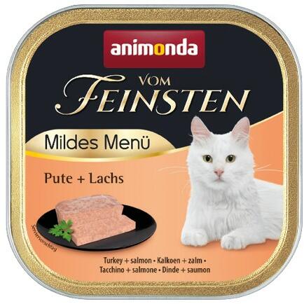 A Vom Feinsten Adult Mildes Menu a kiegyensúlyozott, ízletes, egészséges táplálkozást jelenti a legmagasabb szinten 1 és 6 éves kor közötti felnőtt macskák számára. A kizárólag jól emészthető pulykahúsból készült finom receptek – belsőségek és máj nélkül – különleges csemegét kínálnak a macskáknak. A finoman darabos piték minden alapvető tápanyagot ellát