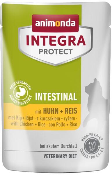 Az Animonda Integra Protect Intestinal egy speciálisan csirkével és rizzsel készült eledel akut hasmenéses macskák számára. Az INTEGRA PROTECT Intestinal kifejezetten akut hasmenéses macskák számára lett összeállítva. A könnyen emészthető összetevők védik a gyomor-bél traktust. A megnövelt elektrolittartalom kompenzálja a hányás és hasmenés okozta veszteségeket. össz
