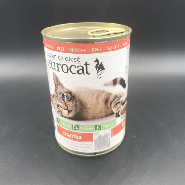 Macskaeledel konzerv marhás 415g Összetétel: Hús és állati származékok (4% marha), gabonafélék, ásványi anyagok. Analitikai összetevők: nedvességtartalom 81%, nyersfehérje 7%, nyers olajok és zsírok 3%, nyershamu 3%, nyersrost 0,5%. Adalékanyagok: Vitaminok és nyomelemek/kg: A-vitamin: 1100 NE, D3-vitamin: 150 NE, E-vitamin: 10 mg, Réz (réz-II szul-fát pentahidrát) 1,4 mg,