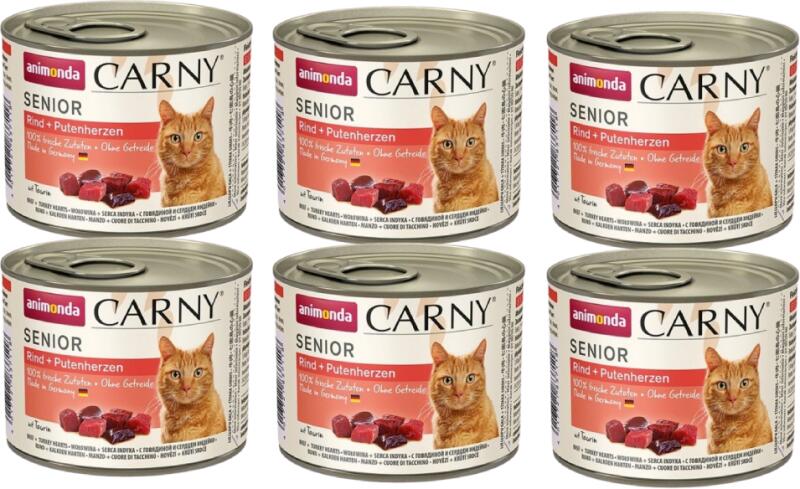 Animonda Cat Carny Senior marhahús és pulyka szív 200g - Termékleírás Teljes értékű eledel 7 év feletti idős macskák számára. Az ételeket kizárólag válogatott, kiváló minőségű húsokból készítik. Az Animonda CARNY friss és zamatos húsdarabok, amelyeket kíméletesen, a megjelenést vagy az ízt javító kiegészítők vagy segédanyagok hozzáadása nélkül készítene