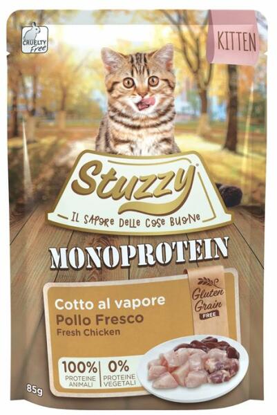Stuzzy Cat Monoprotein finom tasak hússal tele egy állati fehérjeforrásból kiscicák számára, gyógynövénymentes recept. a különleges monoprotein receptnek köszönhetően ideális bizonyos fajta fehérjékre túlérzékeny kutyák számára gabonafélék, glutén, ételfesték és tartósítószerek nélkül a Bolognai Egyetem Alma Mater Studiorum Állatorvosi Tudományok Kara jóváha