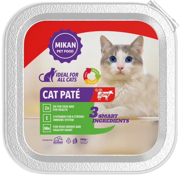 Mikan Cat Pate Beef Minden macska számára megfelelő Zn a bőr és a szőrzet egészségéért E-Vitamin az erős immunrendszerért Mn a magas energiáért és az egészséges szívértAdjon macskájának kiegyensúlyozott és ízletes ételt, amelyet kifejezetten a macskák egészségének és vitalitásának támogatására állítottak össze. Etessen macskájával marhahússal dúsított, te