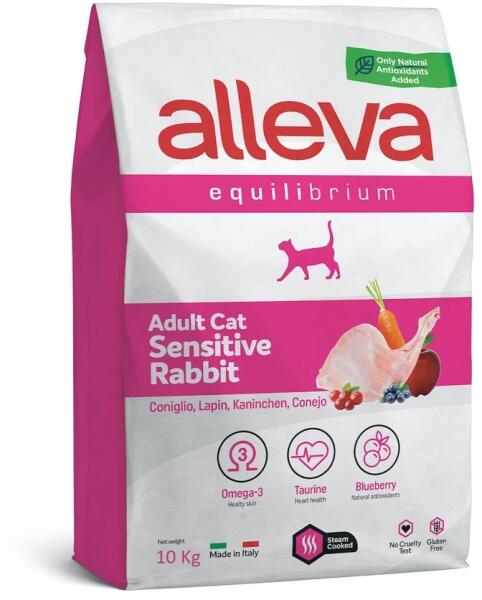 Nyúlhúst tartalmazó gluténmentes táp érzékeny macskák részéreFelnőtt macskáknak ÖSSZETÉTEL: Nyúl (35%) (amelynek 80%-a szárított, 20%-a friss), rizs, kukorica, csirkezsír, szárított hal (10%), borsókeményítő, hidrolizált állati fehérjék, halolaj, növényi rost (borsó), cikóriagyökér (inulin- és frukto-oligoszacharid forrás), szárított inaktivált sörélesztő