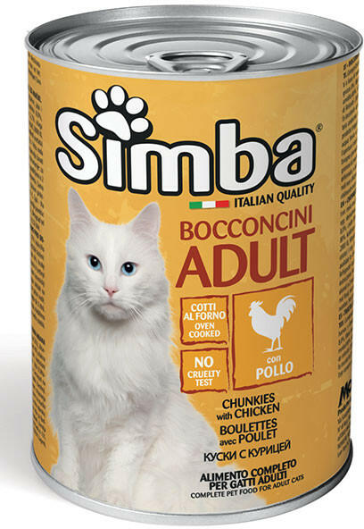 SIMBA MACSKAELEDEL CSIRKEHÚSSAL, teljes értékű állateledel felnőtt macskák számára. Minőségi összetevőket tartalmaz, mint például a csirkehús, amely fehérje- és ásványianyag-forrás, sütőben sütve, hogy fokozza a természetes ízét és serkentse a macska napi étvágyát. A készítményt speciális A-D3-E vitamin kombinációval fejlesztették ki, hogy kielégítse a macsk